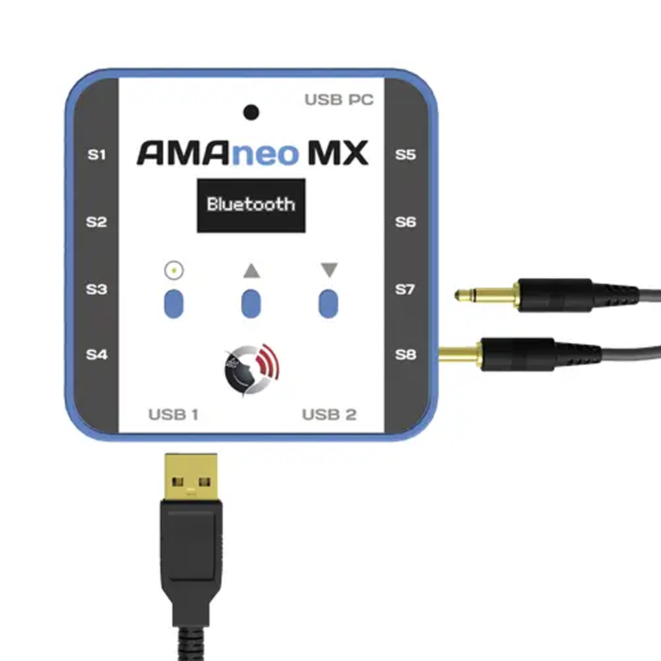 AMAneo MX is a smart assistive hub that flexibly adapts mouse, keyboard, and switch inputs for use with PCs, tablets, and mobile devices. Thanks to predefined ready-made profiles, the system is ready to use immediately – without any complicated setup.