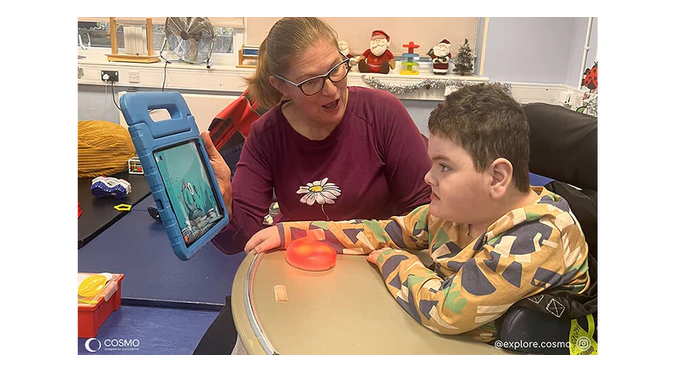 Once it is set up, learners just press Cosmo Dot to interact, making access feel straightforward and predictable.