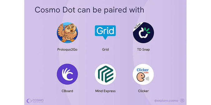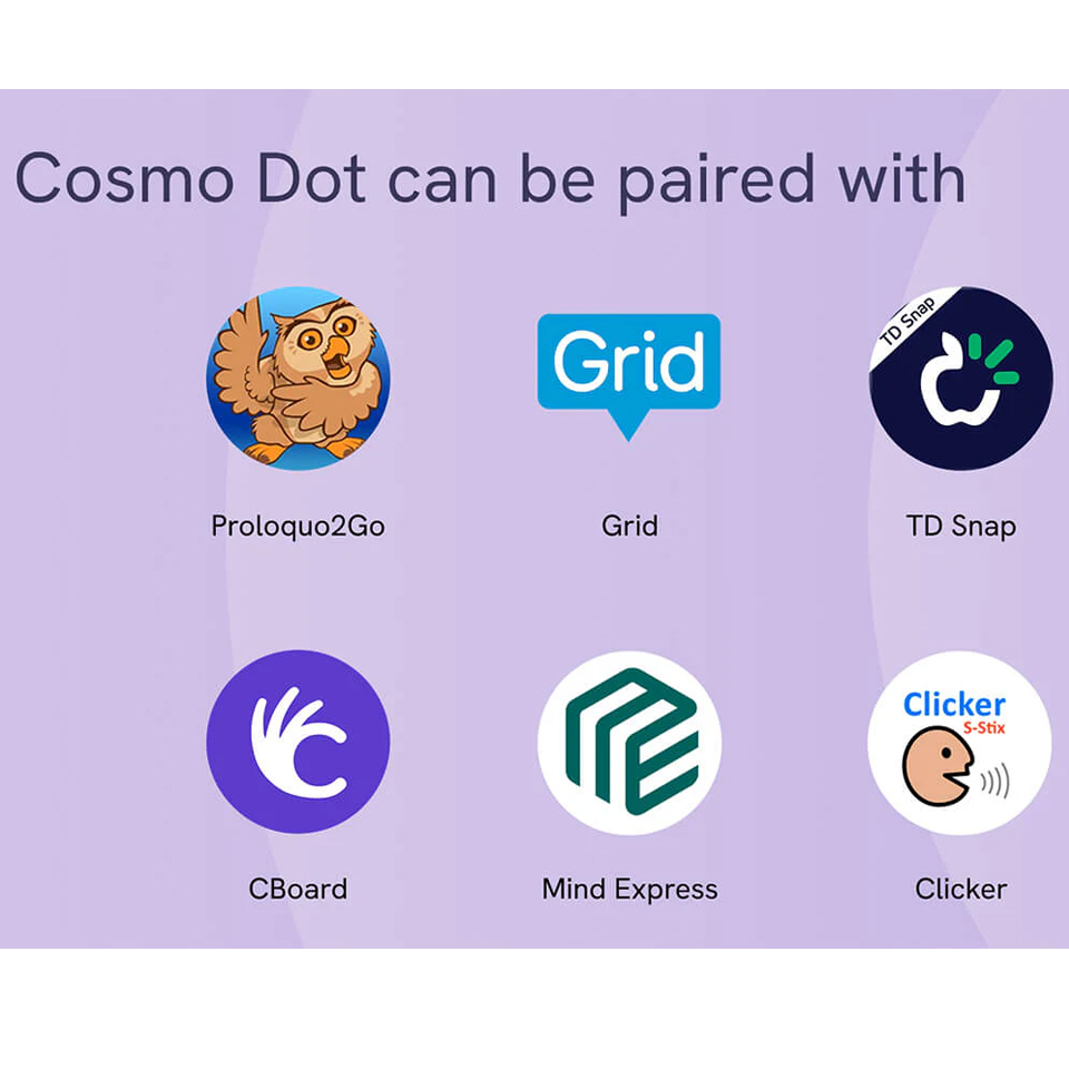 Cosmo Dot is an excellent option for learners who use Augmentative and Alternative Communication (AAC) or are just beginning to explore it. It can be used for scanning, selecting and simple choice making inside many popular AAC apps and software tools.